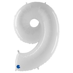 Giant Foil Number 9 Balloon – 86 cm – Matte White
