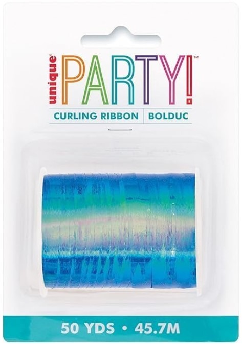 Add some extra decorative flair to the party scene with this Iridescent Blue Curling Ribbon. Use it to give a finishing flourish to your gift wrapping by tying this ribbon around your packages, then sliding scissors across the ends to curl the ribbon. This vibrant Iridescent Blue Balloon Ribbon is also ideal for tying down balloons and adding a stylish finish to balloon bouquets and centrepieces at a hen party, girl’s birthday party, fundraiser, bridal shower or sweet 16 party.