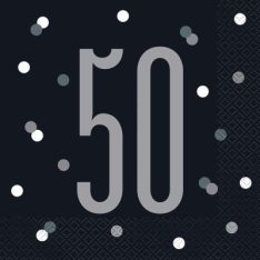 Glitz Black & Silver 50th Birthday Napkins, Pack of 16