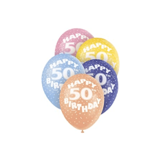 12″ Pearlised Latex Assorted Number 50 Birthday Balloons, Pack of 5