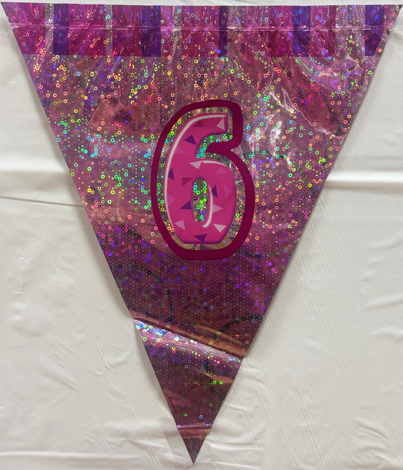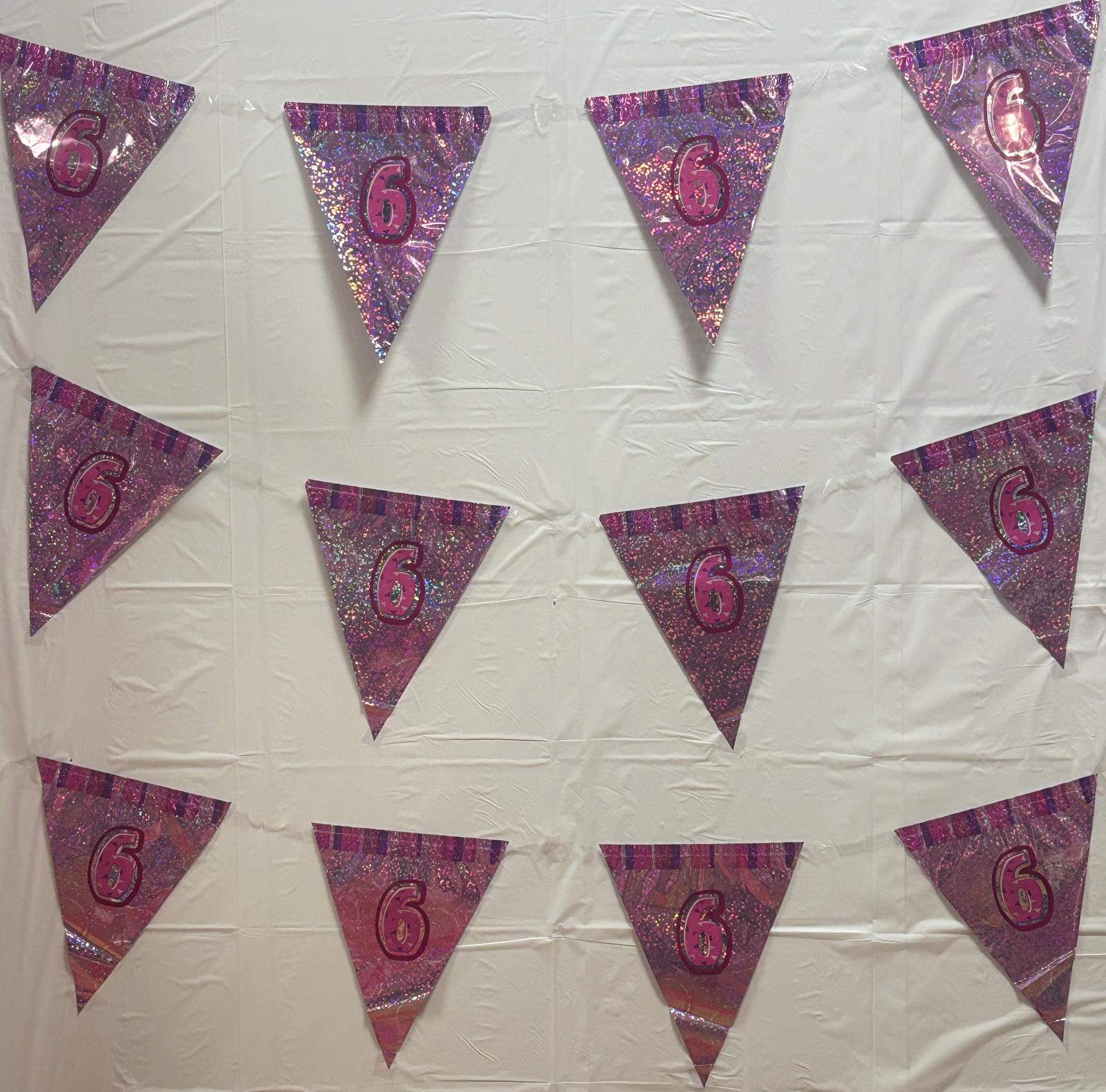 - 1 Pack of Glitz Pink 6th Birthday Bunting