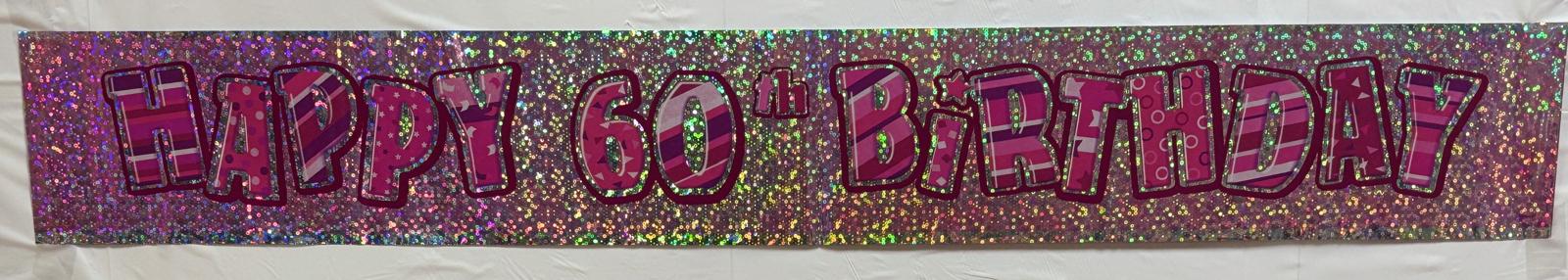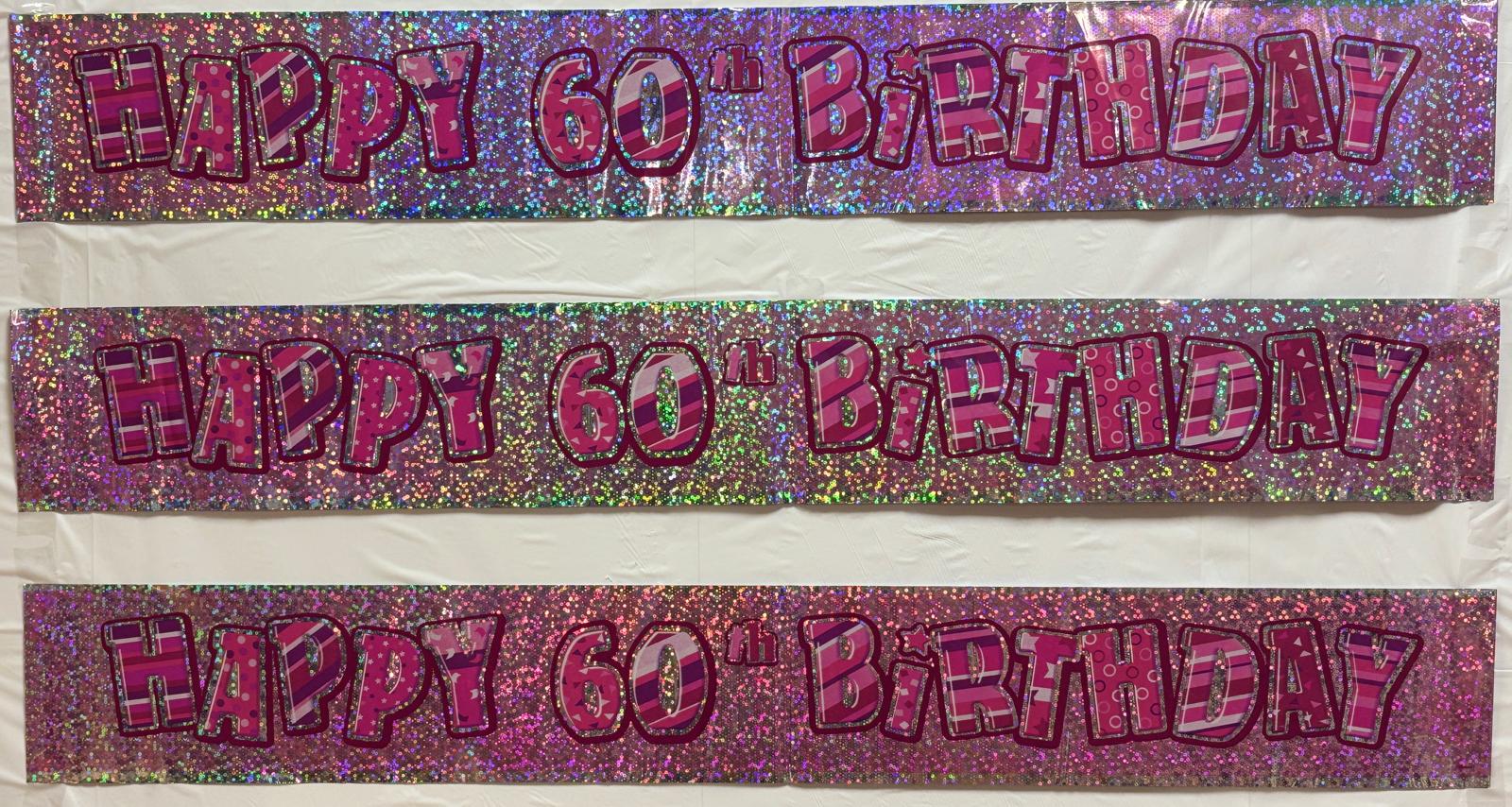 Welcome guests to your milestone birthday celebration with this Glitz Pink & Silver 60th Birthday Banner. Featuring a charming polka dot design and “Happy 60th Birthday” text, this prismatic foil banner will catch and reflect light, making it ideal to decorate a pink themed 60th birthday party. Hang this celebration banner in an archway or above your party table to add a touch of eye catching style to your celebration.